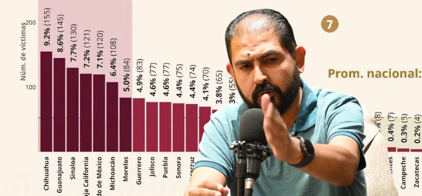 El regidor morenista destacó el incremento que representa que el estado ascendió en el ranking nacional, luego que en 2021 que inició la administración de la gobernadora María Eugenia Campos Galván, el estado se encontraba en la quinta posición y actualmente se ha llegado al lamentable primer lugar.